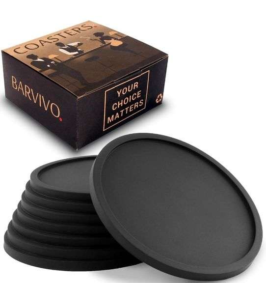 Barvivo Silicone Coasters with Holder Set of 8 - Cup Coasters for Indoor and Outdoor, Perfect Durable Coaster for Tabletop Protection, Anti Slip, Suitable for All Drinks & Table Types - Black