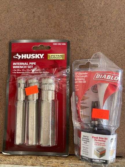 LOT 9193 - Husky internal Pipe Wrench set with Diablo 1/2” Flush trim bit