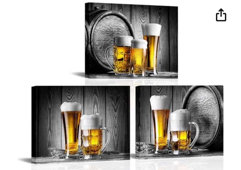TiuAuiT 3 Pieces Black and White Kitchen Picture Wall Decor Vintage Beer Glasses and Barrel Painting Prints on Canvas for Dining Room Contemporary Home Decor Artwork Gallery Wrapped Ready to Hang