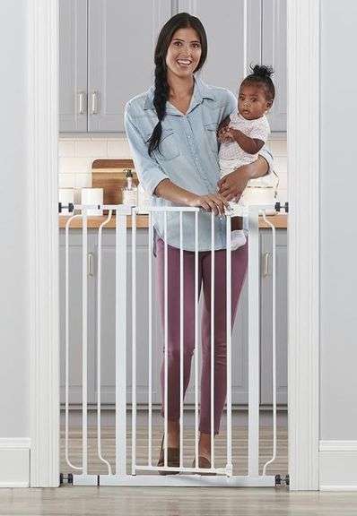 LOT 9025 - Regalo Easy Step 36" Extra Tall Walk Thru Baby Gate, Includes 4-Inch Extension Kit, 4 Pack of Pressure Mount Kit and 4 Pack Wall Cups and Mounting Kit, Pack of 1