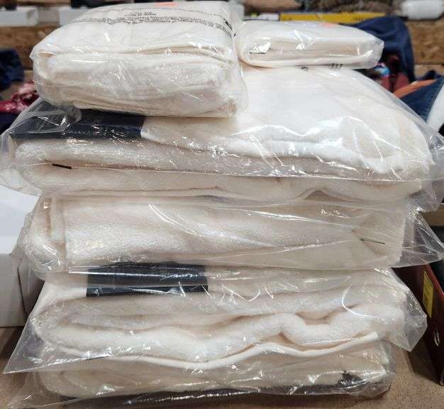 LOT 1075 - Bath towel set 6 pc. 4 bath towels 1 hand towel and 1 wash cloth off white