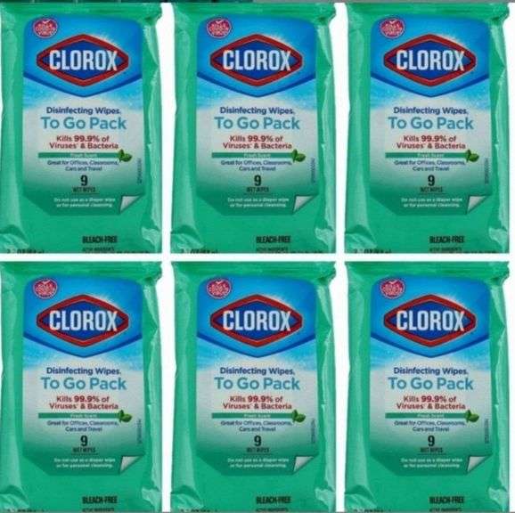 Clorox Disinfecting Wipes To Go Packs - 6 Packs of 9 Wet Wipes