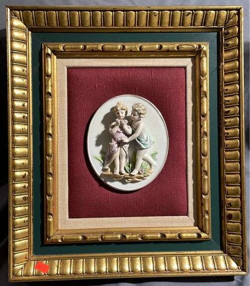 Framed China wall decor 16” x 14” (paint loss on frame)